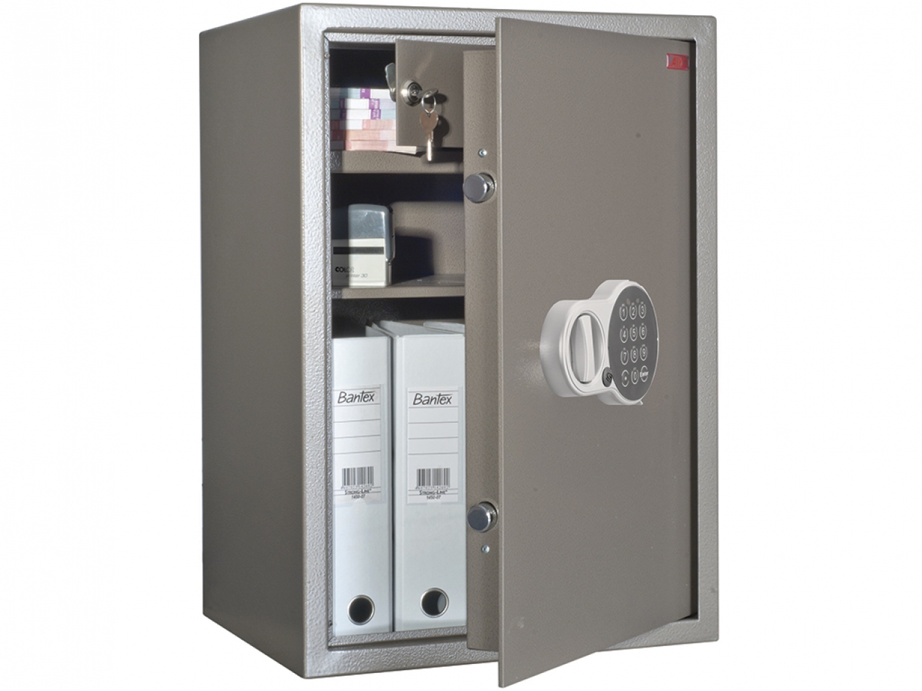 - универсальный сейф для дома/офиса/бухгалтерии, позволяет хранить ценности и документы, 1 полка + трейзер - кассовое отделение для хранения наличных денег с отдельным ключевым замком;