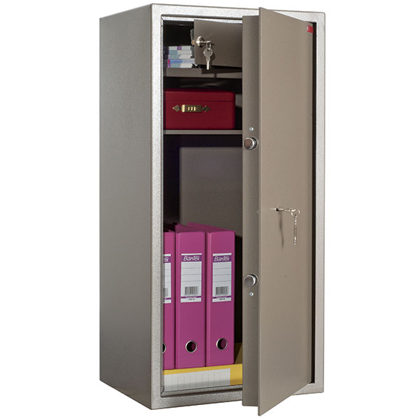 - большой универсальный сейф для дома/офиса с надежным запорным механизмом, есть защита от высверливания, утолщенные боковые стенки, 1 полка (с возможностью переставки по высоте) + трейзер (кассовое отделение) с отдельным ключом;
