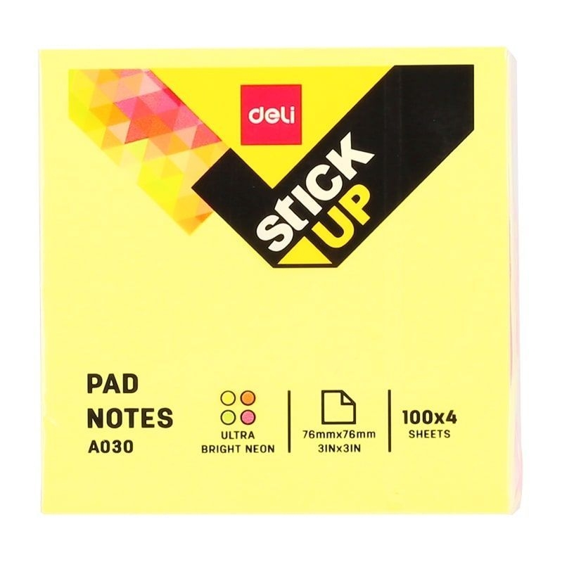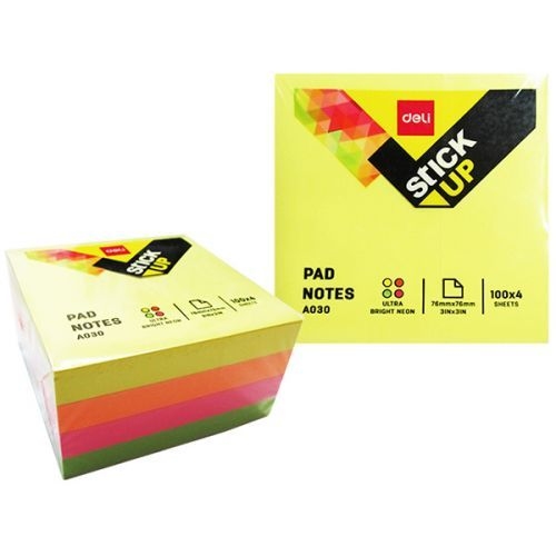 Блок для записей 76х76 мм. Deli, с клеевым краем, 4 цвета по 100 листов (А03003)