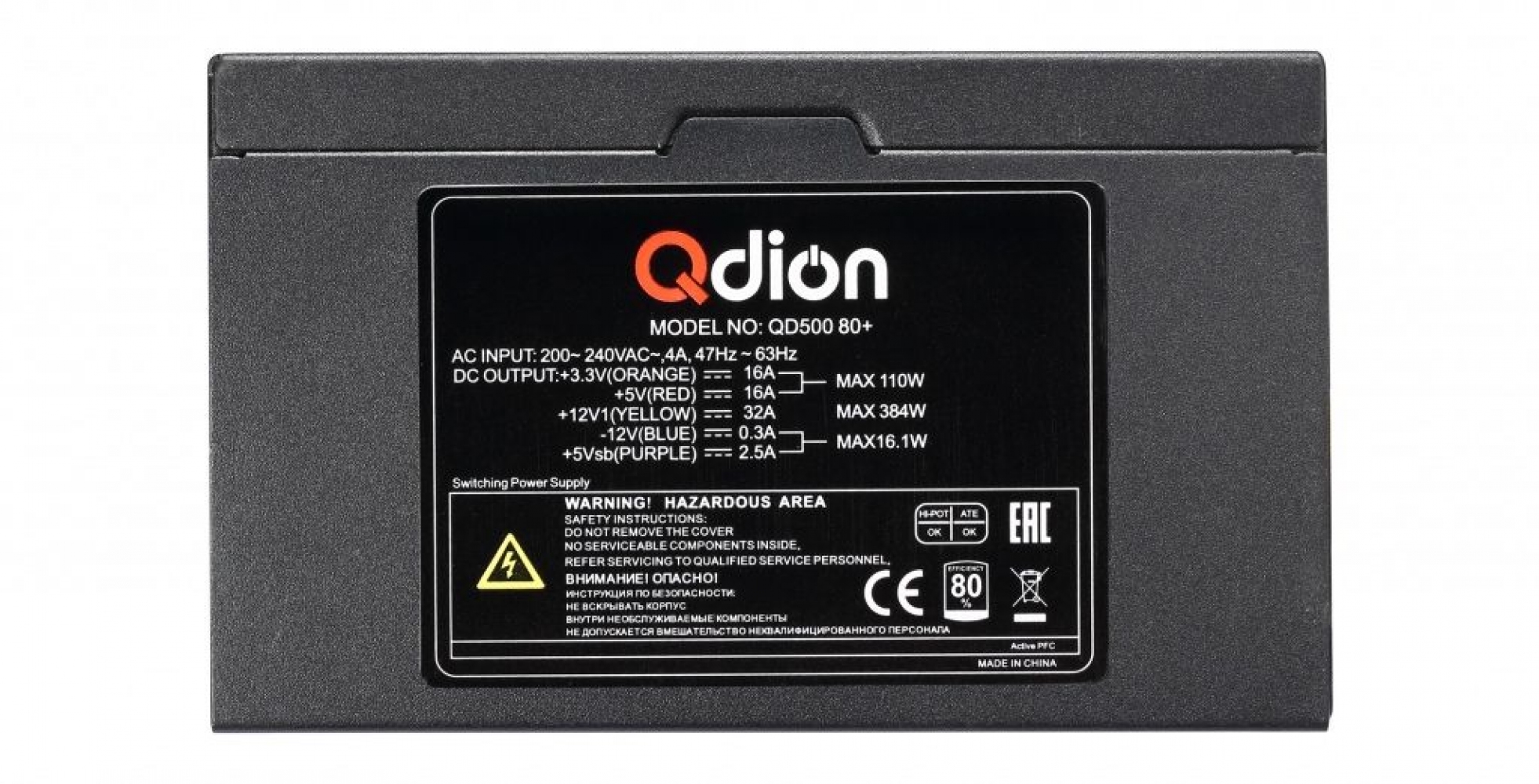 - КПД 80+ (сертификат 80 Plus Bronze), есть система компенсации мощности (PFC), а также терморегуляция вентилятора;
