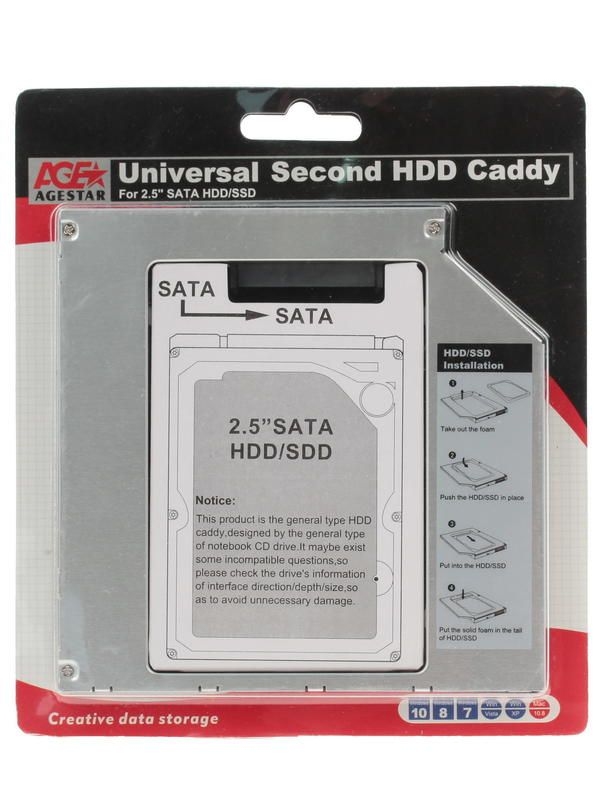 - адаптер для жестких дисков HDD/SSD форм-фактора 2.5", подключение в слот оптического привода CD/DVD ноутбука;