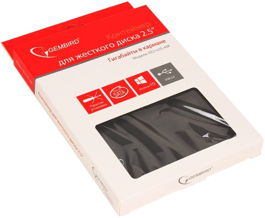 Бокс внешний для HDD 2,5" Gembird EE2-U2S-40P, черный, USB 2.0, SATA