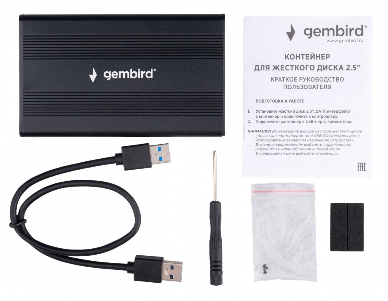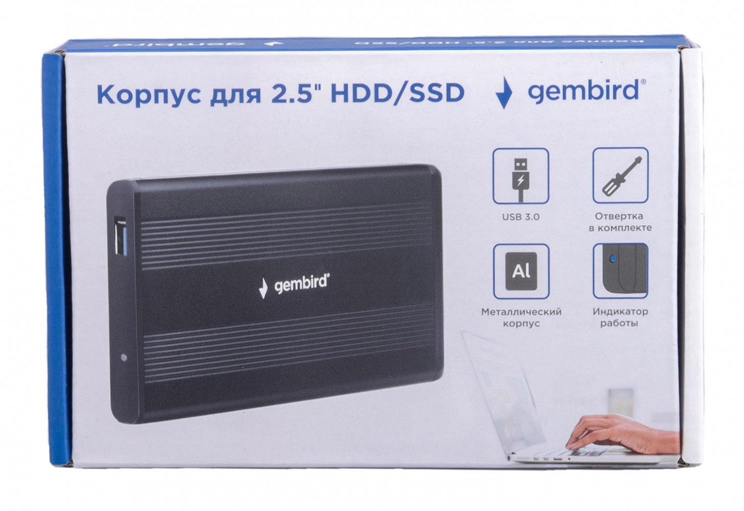 Бокс внешний для HDD 2,5" Gembird EE2-U3S-5, черный, USB 3.0, SATA металл