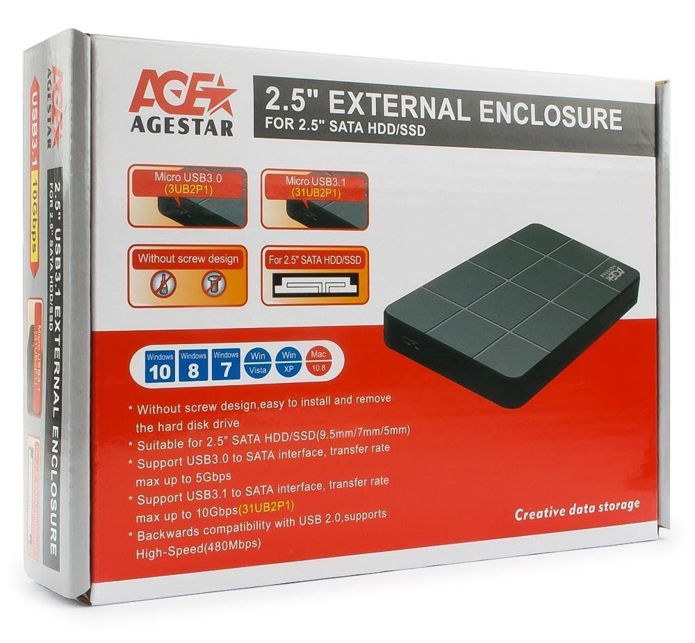 - внешний корпус (бокс) для жесткого диска с форм-фактором до 2.5", безвинтовое крепление, позволяет быстро и легко подключить SATA HDD/SSD диски и передавать информацию через USB;