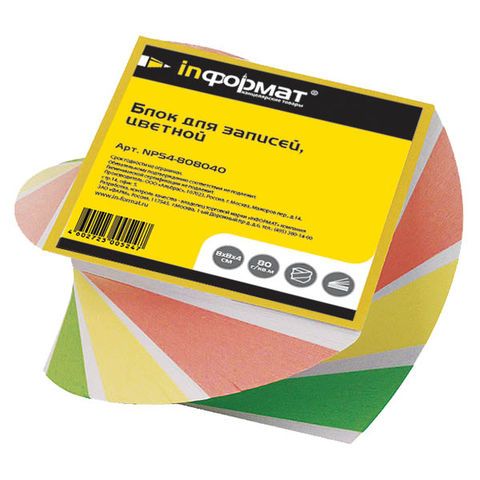 Блок для записей 80x80x40 мм. InFormat, с клеевым краем, цветной, ассорти