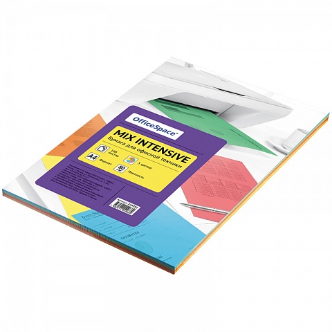 Бумага офисная цветная A4 80г/м 100 л. "Office Space" интенсив микс 5 цв.