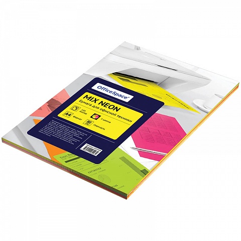 Бумага офисная цветная A4 80г/м 100 л. "Office Space" неон микс 5 цв.
