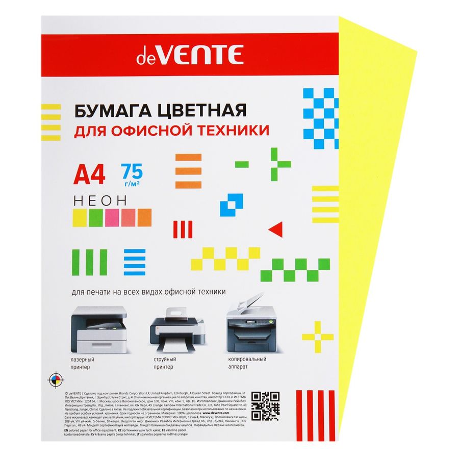 Бумага цветная A4 75г/м 20 л. "deVENTE" Неон желтый арт. 2072220