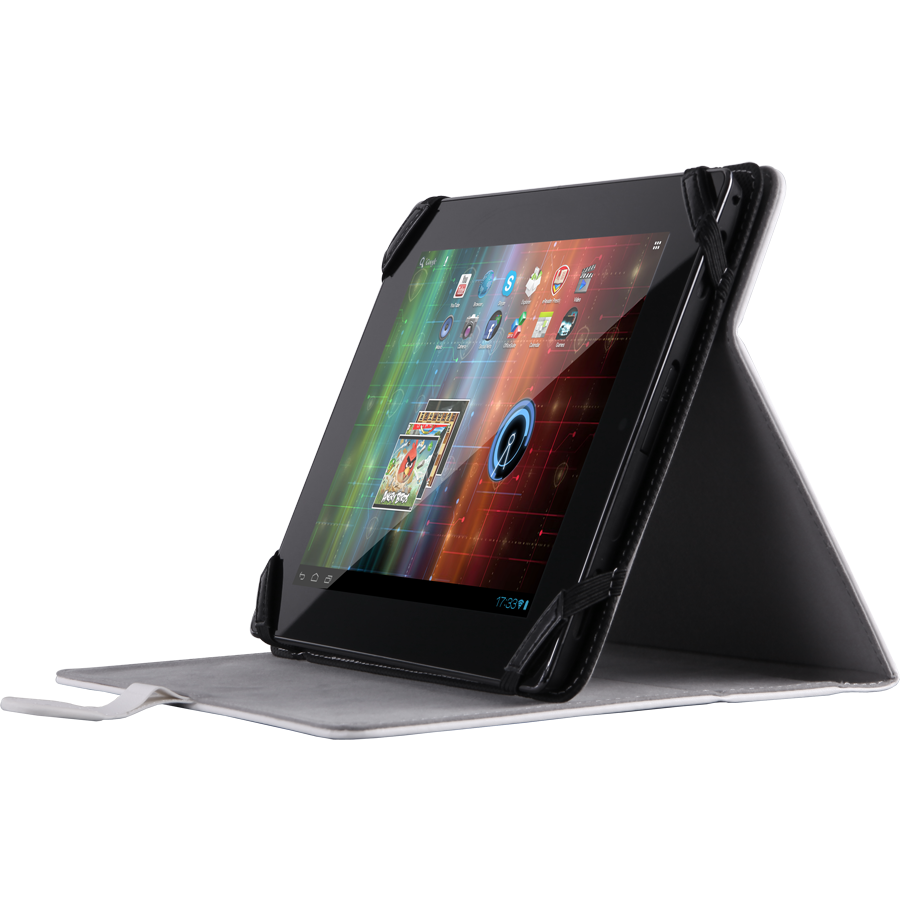 Универсальный чехол для планшетов с диагональю экрана до 8", Prestigio PTCL0208WH, белый цвет. Формат - чехол-книжка с переворачивающимся основанием-подставкой. На магнитной застежке.