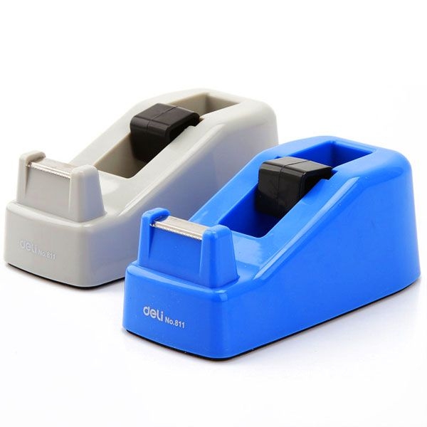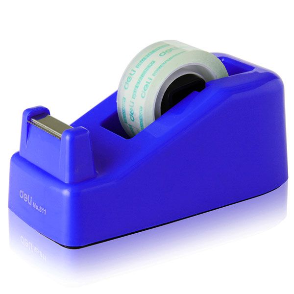 - диспенсер для клейкой ленты (скотча), ширина клейкой ленты до 21 мм, диаметр до 27 мм, имеет утяжелитель для комфортного размещения и устойчивости на столе, цвет ассорти;
