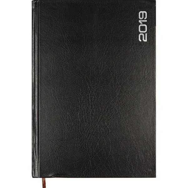 - ежедневник датированный на 2019 год, черный цвет обложки, материал обложки - бумвинил;