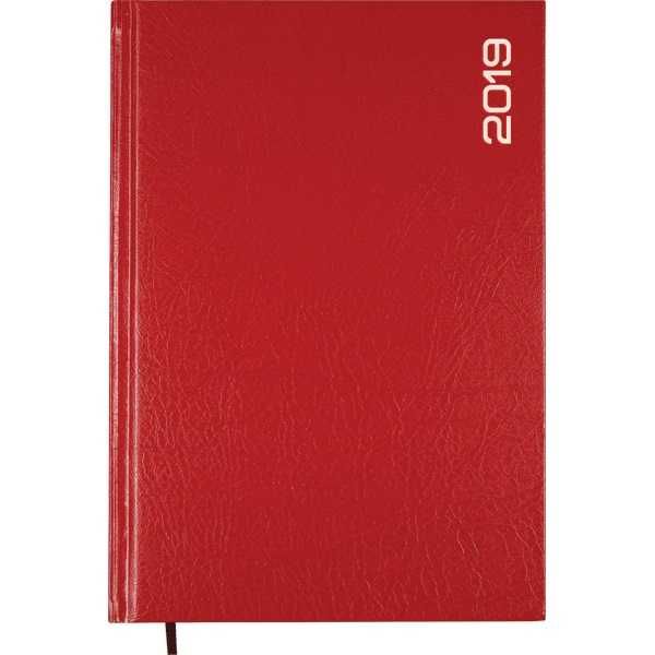 - ежедневник датированный на 2019 год, твердая обложка - плотный бумвинил красного цвета с тиснением;