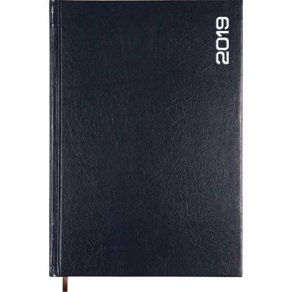 - ежедневник датированный на 2019 год, твердая обложка - плотный бумвинил тёмно-синего цвета;