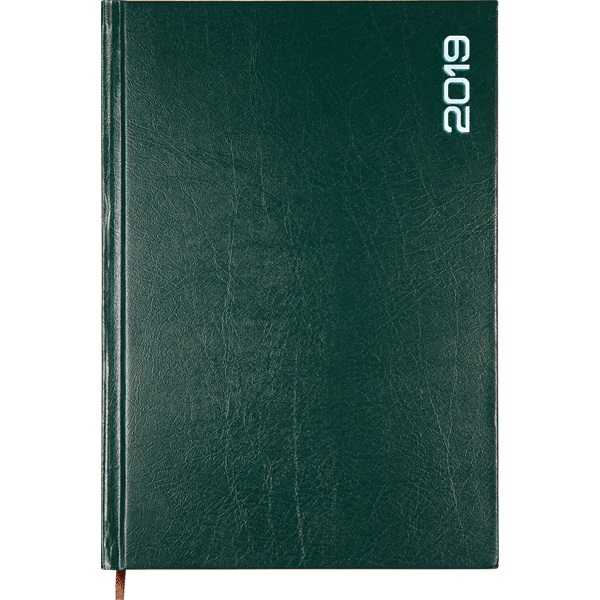 - ежедневник датированный на 2019 год, твердая обложка - плотный бумвинил зеленого цвета, с тиснением по обложке;