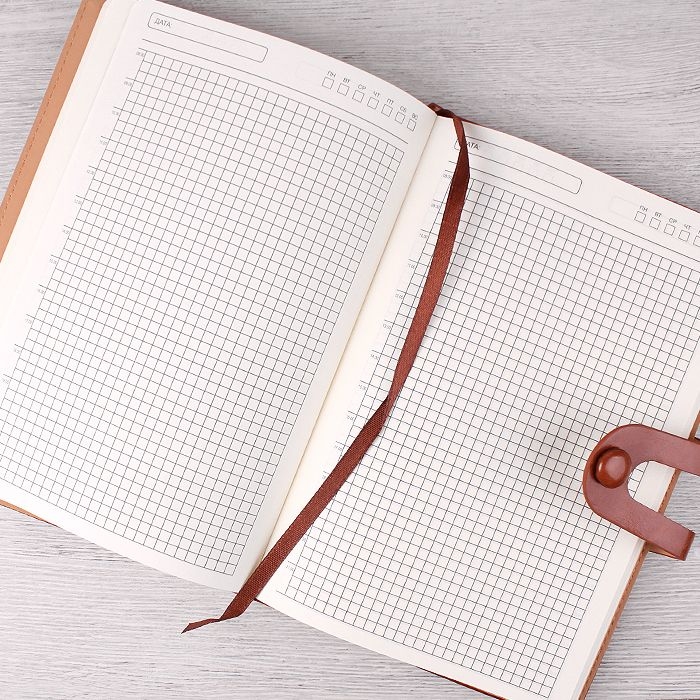 - ежедневник недатированный в клетку, формат A5, 168 страниц;