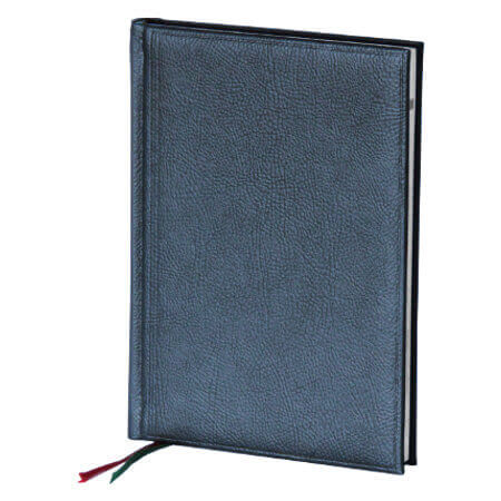 - ежедневник недатированный, формат A5, синяя обложка (тип Престиж, текстура под кожу) плотная;