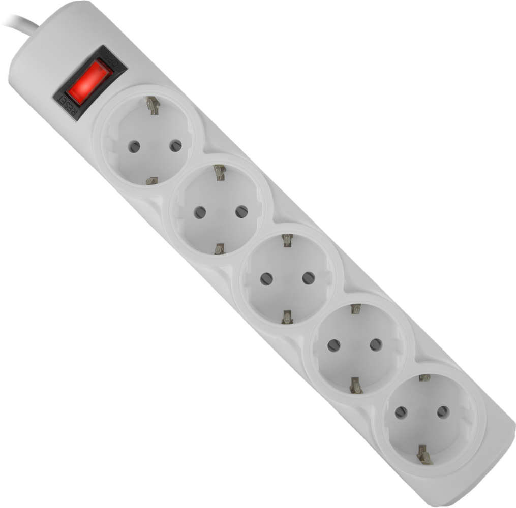 Сетевой фильтр на 5 розеток евростандарта с заземлением (необходимо заземление в сети электропитания), устройство начального уровня, предназначено для защиты подключенных потребителей от всплесков в сети электропитания, а также импульсных помех и перегрузок по току.