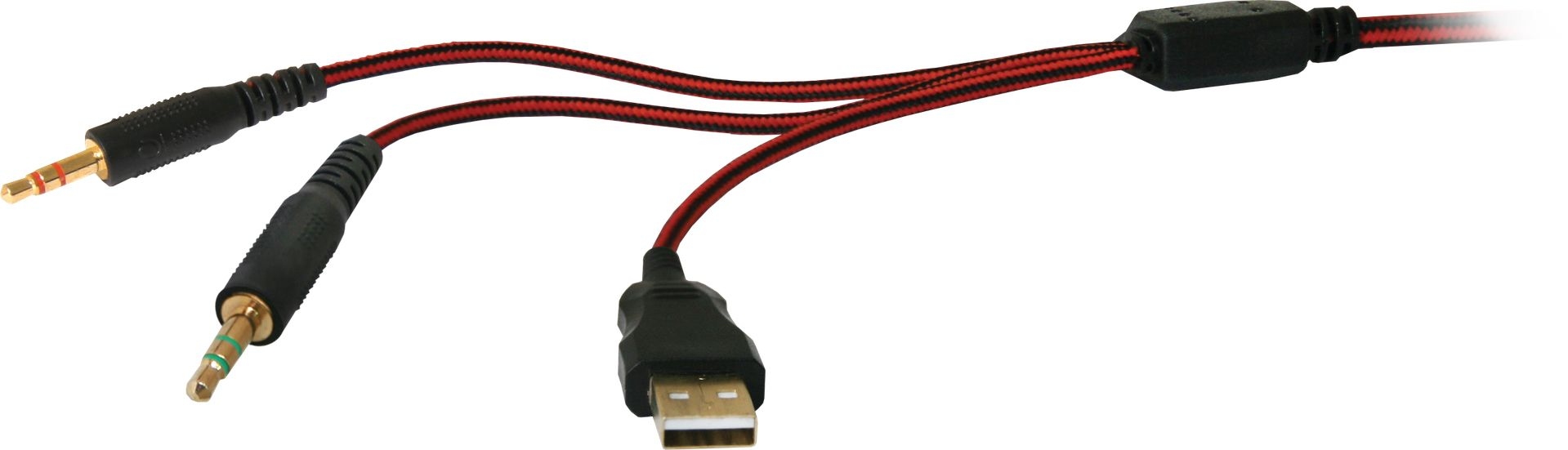- гарнитура игровая, цвет черно-красный, кабель 2 метра в плетении;