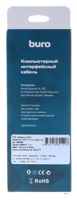 - кабель Lightning для зарядки/синхронизации/передачи данных для смартфонов/планшетов Apple, белый цвет, длина кабеля 1 м.;