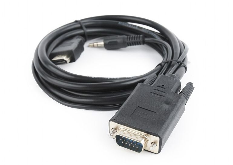- переходник-преобразователь цифрового сигнала HDMI в аналоговый VGA с выходом аудио на стандартный разъем mini-jack 3.5 mm, не требует внешнего питания, длина 1.8 м;