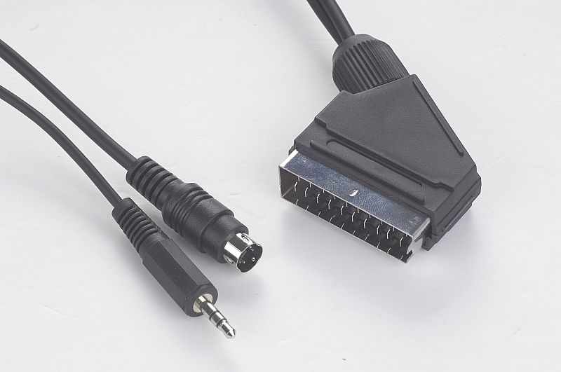Кабель-переходник для подключения аудио-видео техники, а также для подключения старой аудио-видео аппаратуры к современным телевизорам: SCART на видеоразъем S-Video и аудио minijack 3.5 дюйма.