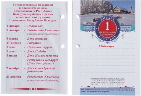 Содержит афоризмы на каждый день, праздничные дни, с календарем.