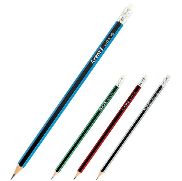Карандаш чернографитный Axent с ластиком, 189мм (HB) арт. 9002