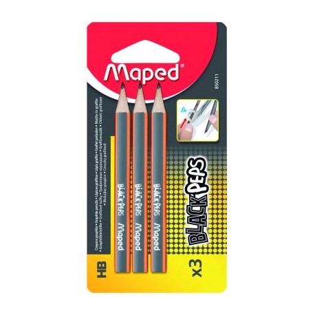 Карандаш простой Maped "Mini Black Peps" НВ 3 шт., блистер, серый