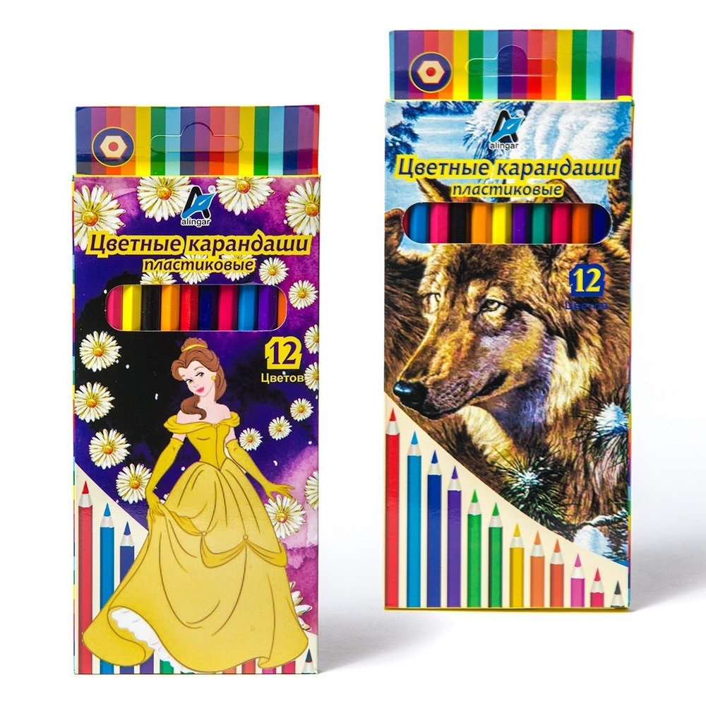Карандаши цветные Alingar 12цв. "Сказочный мир" пластик, шестигранные, заточен арт.AL6422