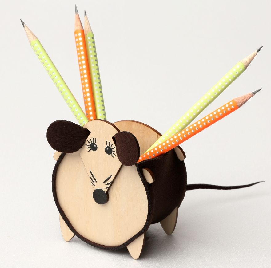 Карандашница "Мышь" деревянная, коричневый цвет
