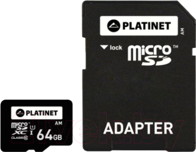Карта памяти microSDHC PLATINET SECURE DIGITAL + ADAPTER SD 64GB class10 UI 70MB/s [PMMSD64UI]