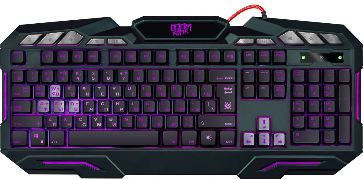 - яркая регулируемая подсветка клавиш и символов на клавишах - 3 цвета (красный, фиолетовый, ярко-синий);