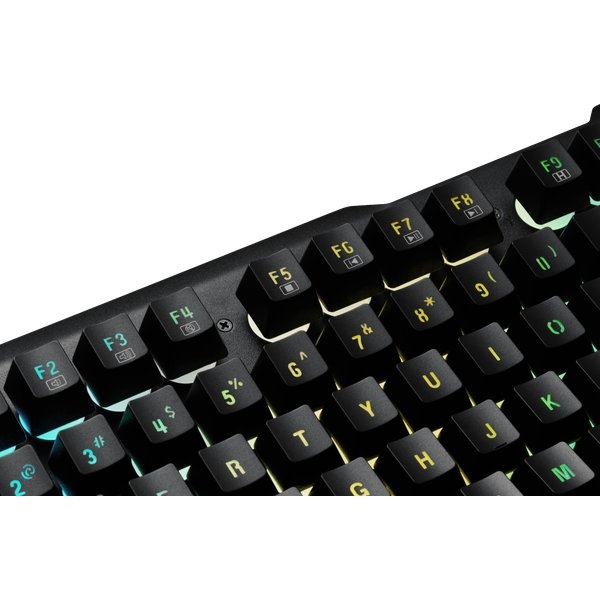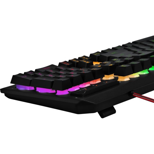 - расширенная RGB подсветка клавиш и символов на клавишах, 12 мультимедийных клавиш, встроенная подставка под запястье;