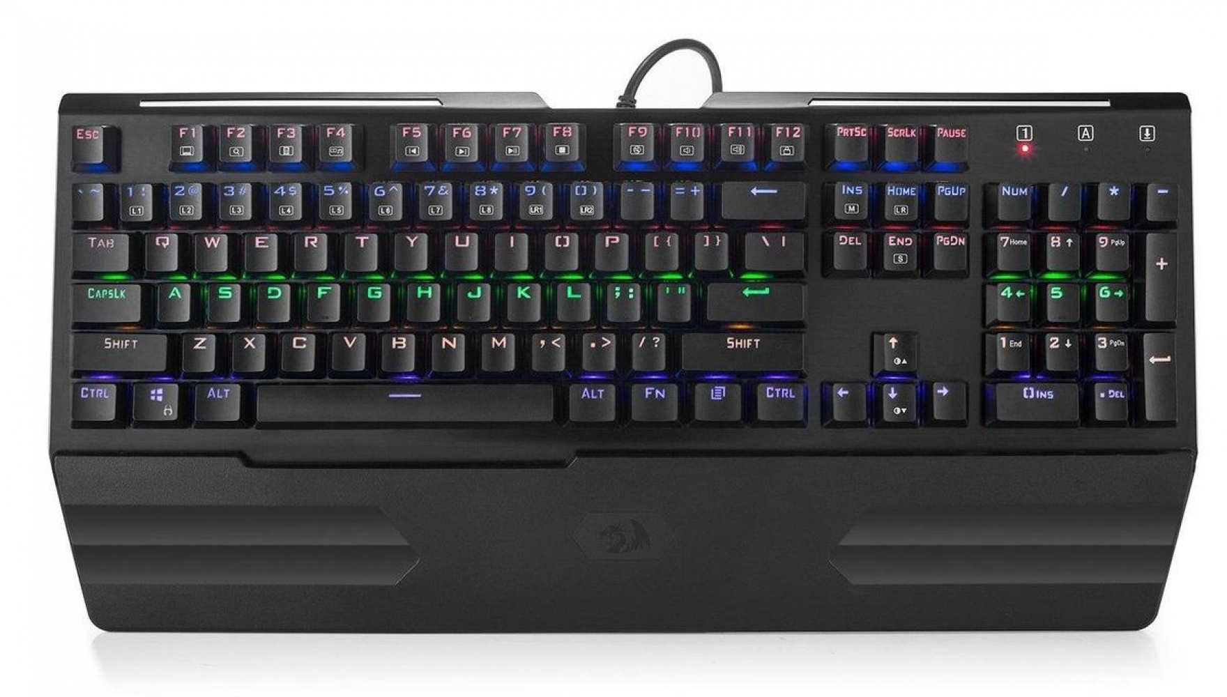 - проводная механическая игровая клавиатура в стильном корпусе с металлическим дном и текстурной подставкой под запястья для комфорта и здоровья запястий;