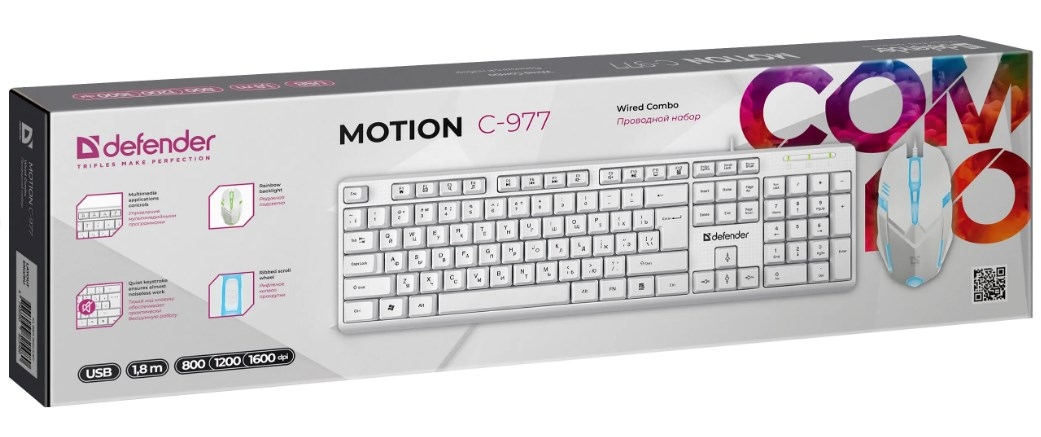Клавиатура+мышь DEFENDER LINE MOTION C-977RU белый, проводной