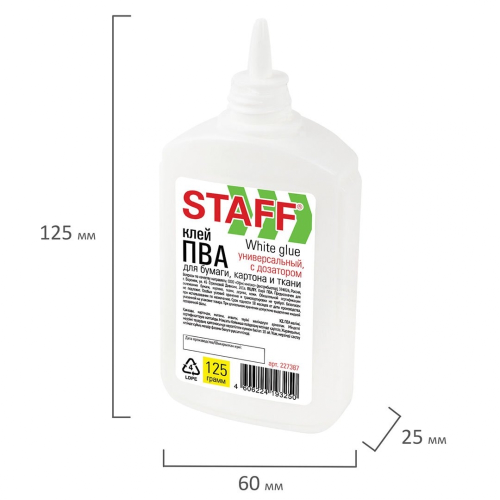 Клей ПВА 125 гр. STAFF с дозатором (арт. 227387)