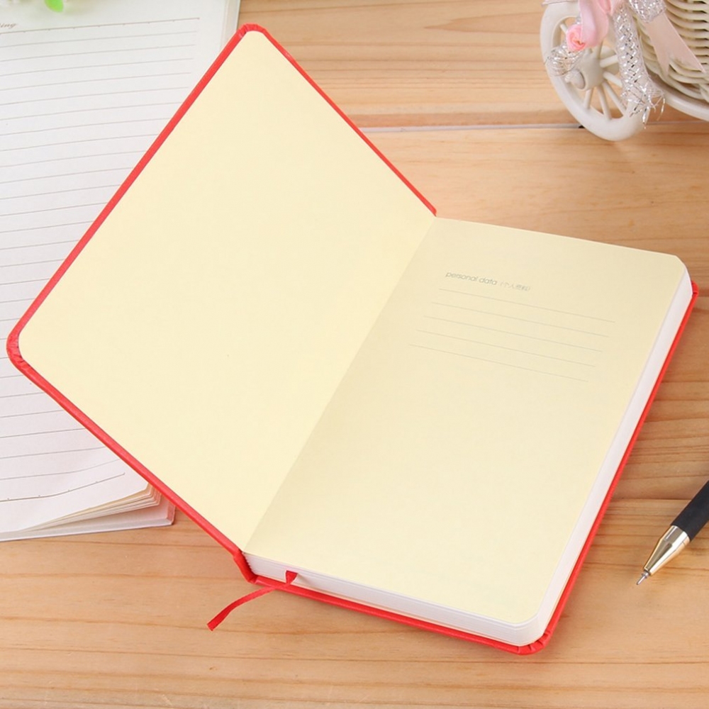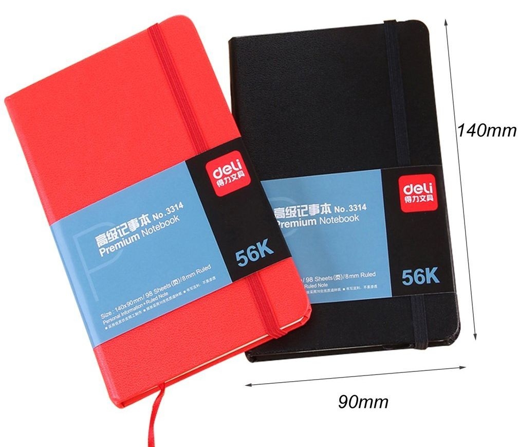 - книжка записная, твердая обложка, доступна в двух цветах: черный или красный, 100 листов в линейку, есть цветная закладка (в тон обложке), на резинке;