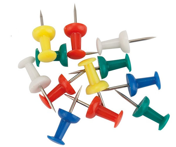 Материал изготовления, может быть металл или пластик, Также есть скрепки и кнопки изготовленные из твердого пластика.