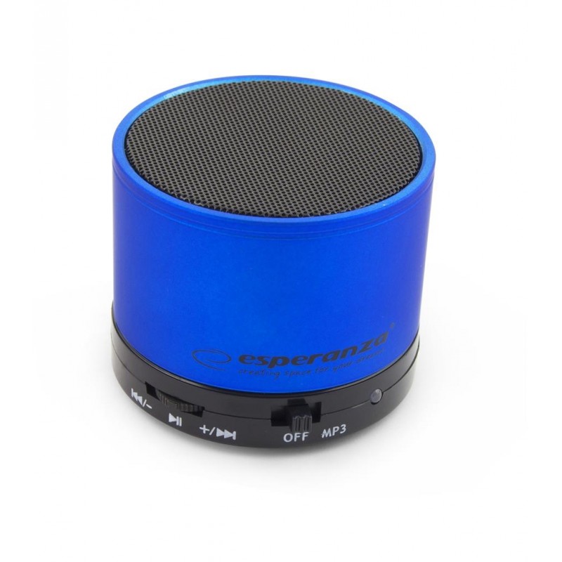 - беспроводная портативная колонка в стильном металлическом корпусе, синий цвет корпуса, полная выходная мощность 3 Вт;