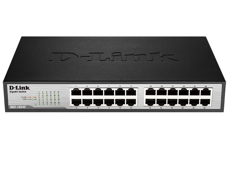 - неуправляемый коммутатор с 24 портами 10/100/1000Base-T, есть возможность монтажа в стойку 19" (крепления в комплекте);
