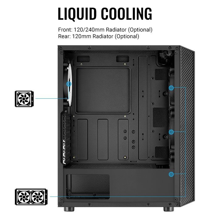 - Mid Tower, блок питания отсутствует, для плат ATX/micro-ATX/mini-ITX, 1 вентилятор, 1xUSB 2.0, 2xUSB 3.0, окно: закаленное стекло, цвет корпуса черный;