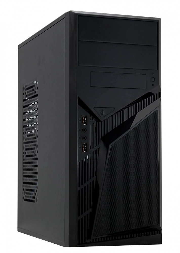 - Mid Tower, блок питания 500 Вт, для плат ATX/micro-ATX/FlexATX, 0 вентиляторов, 2xUSB 2.0, цвет корпуса черный;