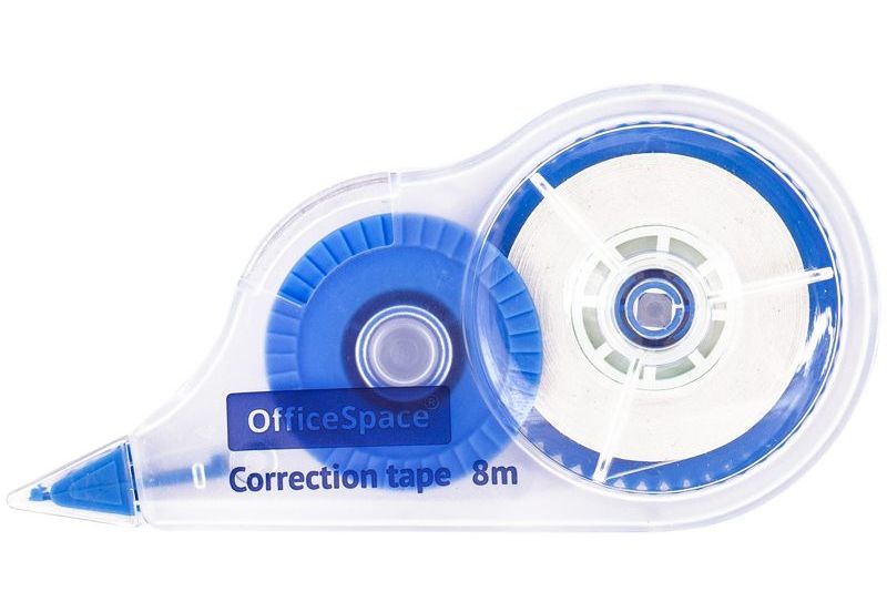 - корректор ленточный, белый цвет корректирующей ленты, прозрачный корпус, легко наносится, быстро высыхает, длина ленты 8 метров;