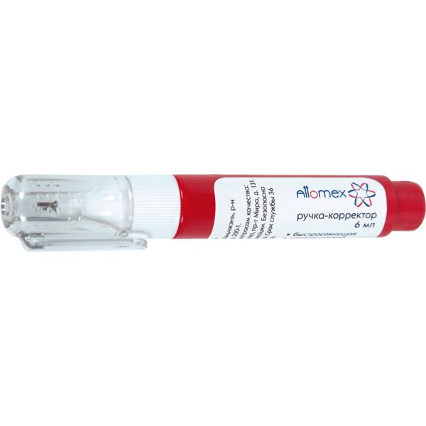 - корректирующая жидкость "Attomex", объем 6 мл, в форме ручки с круглым корпусом и прочным металлическим наконечником с дозаторов, морозоустойчивая (до -50°);