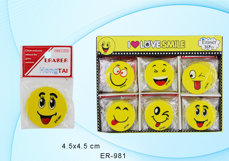 Ластик "Смайлик" большой, желтый, блистер (4,5*4,5см.)