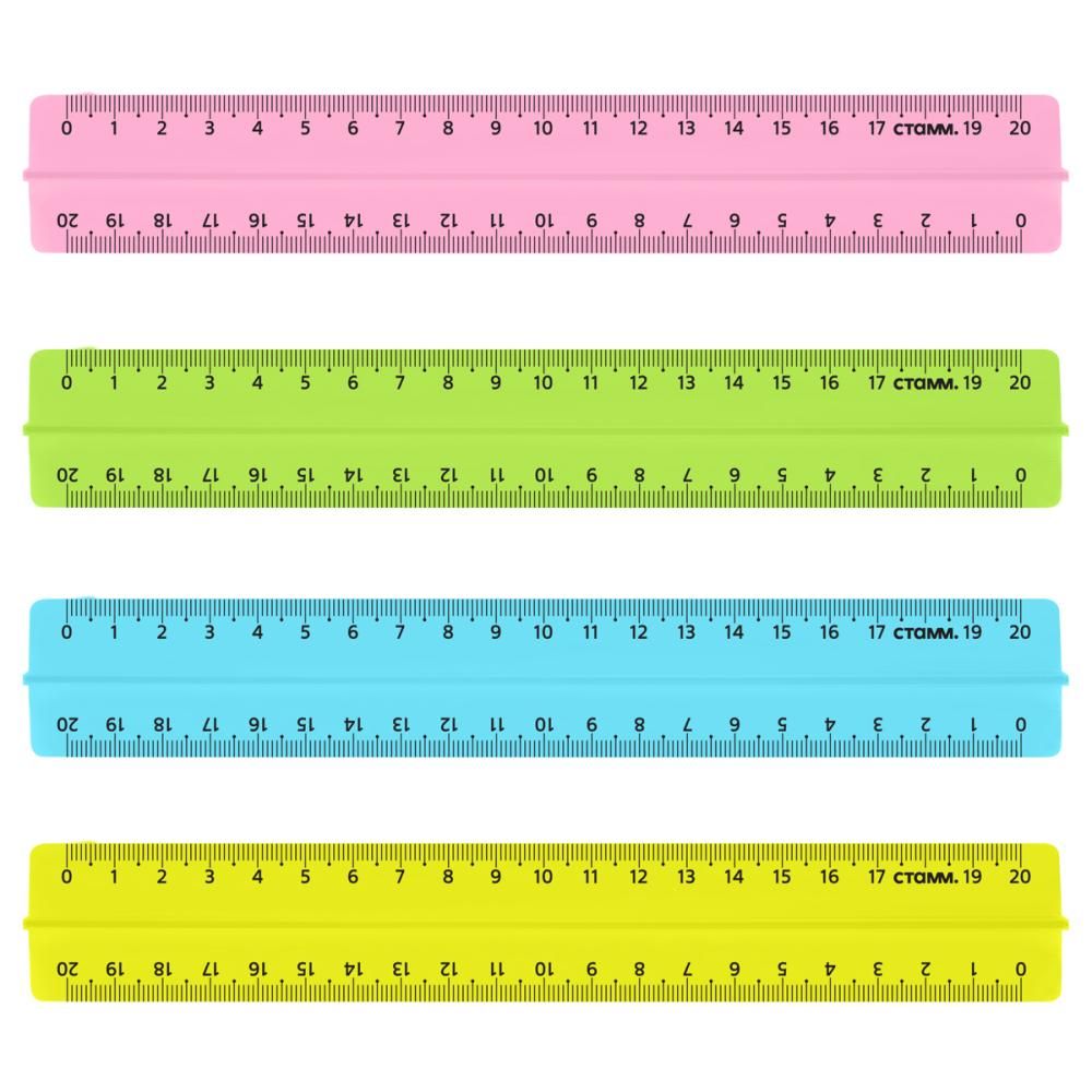 Линейка 20 см. СТАММ с держателем, прозрачный, цвет ассорти, арт. ЛН17