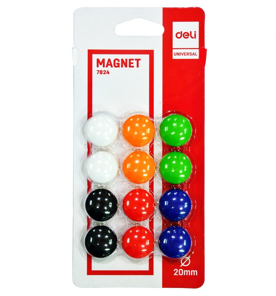 Магниты для доски 20 мм. Deli 7824, ассорти (12 шт.)