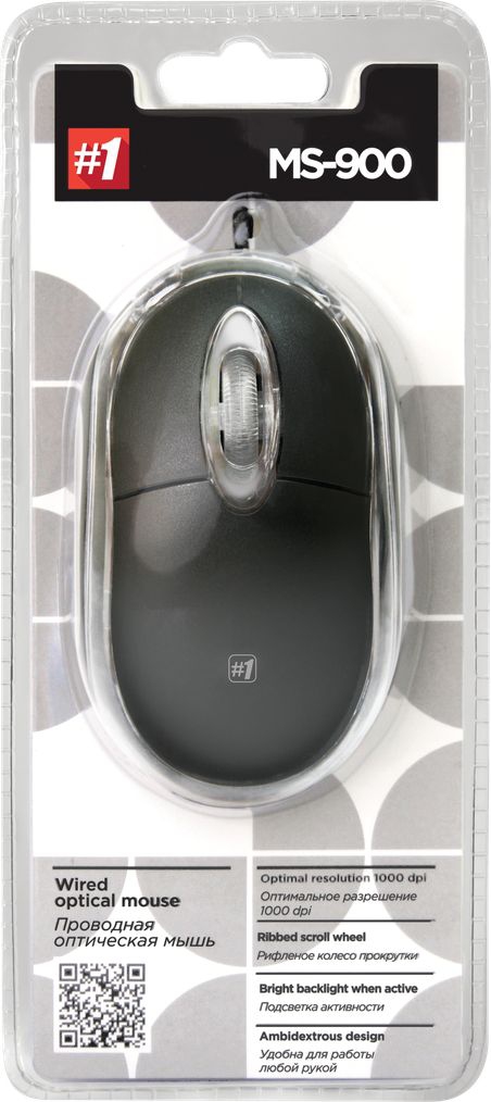 Проводная мышь Defender MS-900, черный корпус с прозрачными вставками по низу корпуса, компактный эргономичный дизайн, удобно лежит в руке, оптический сенсор 1000 dpi.