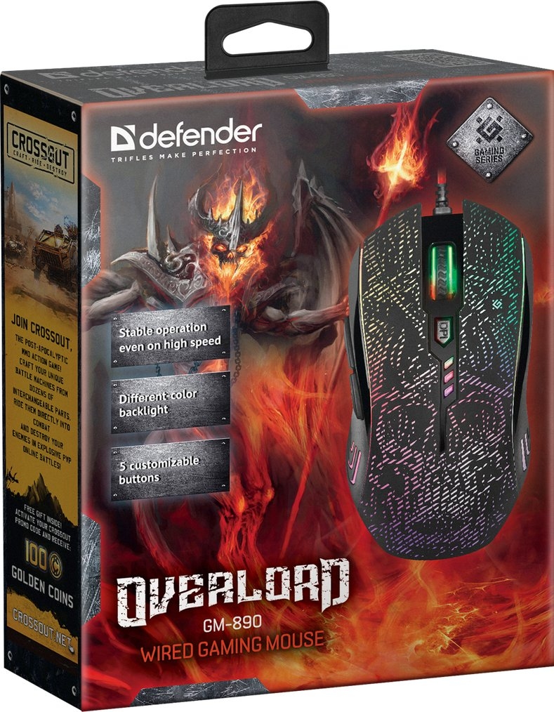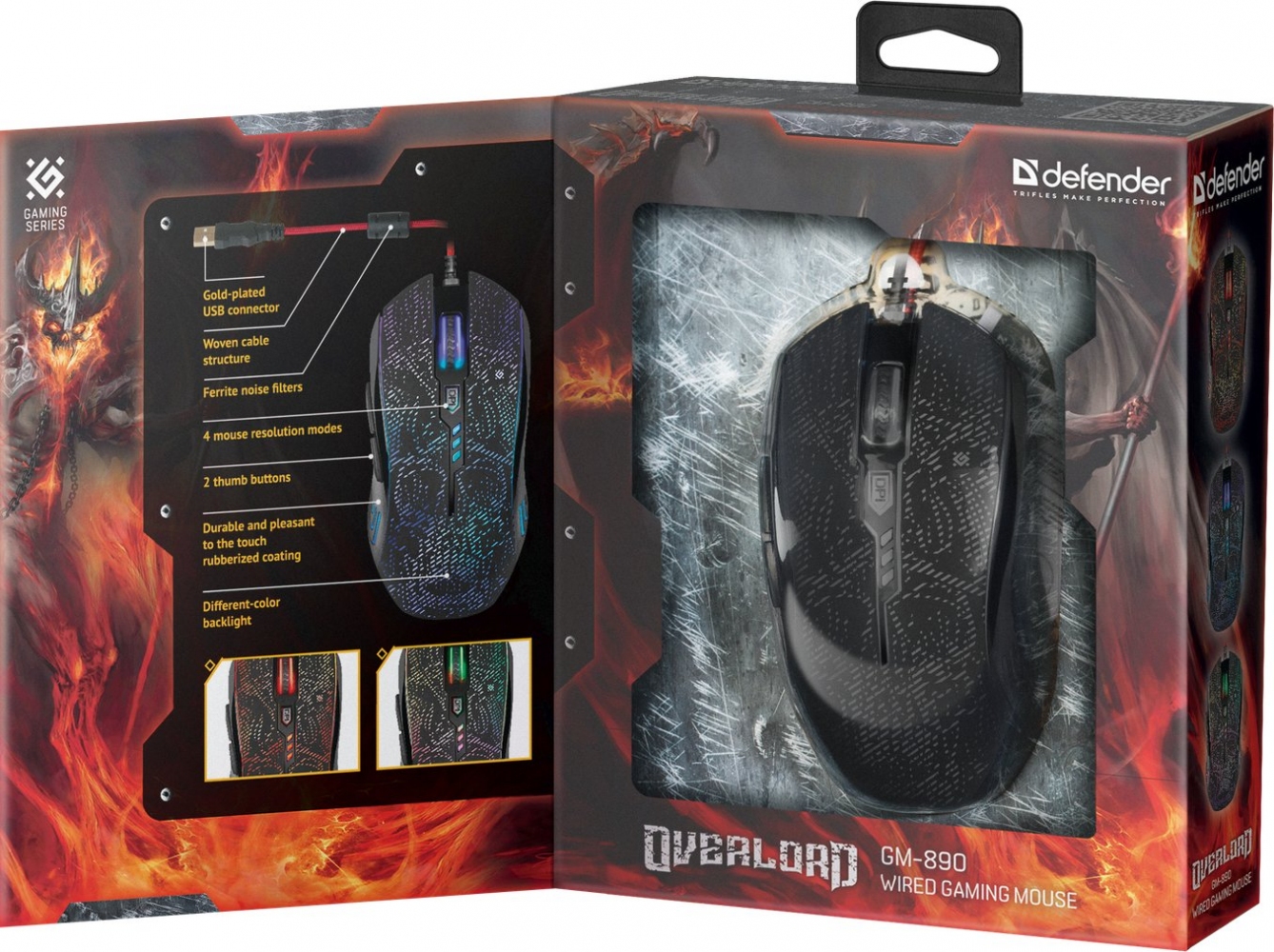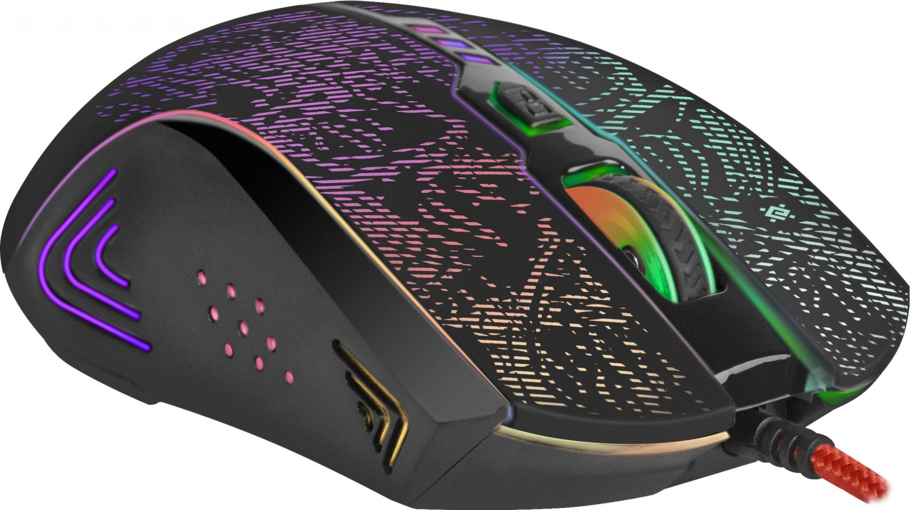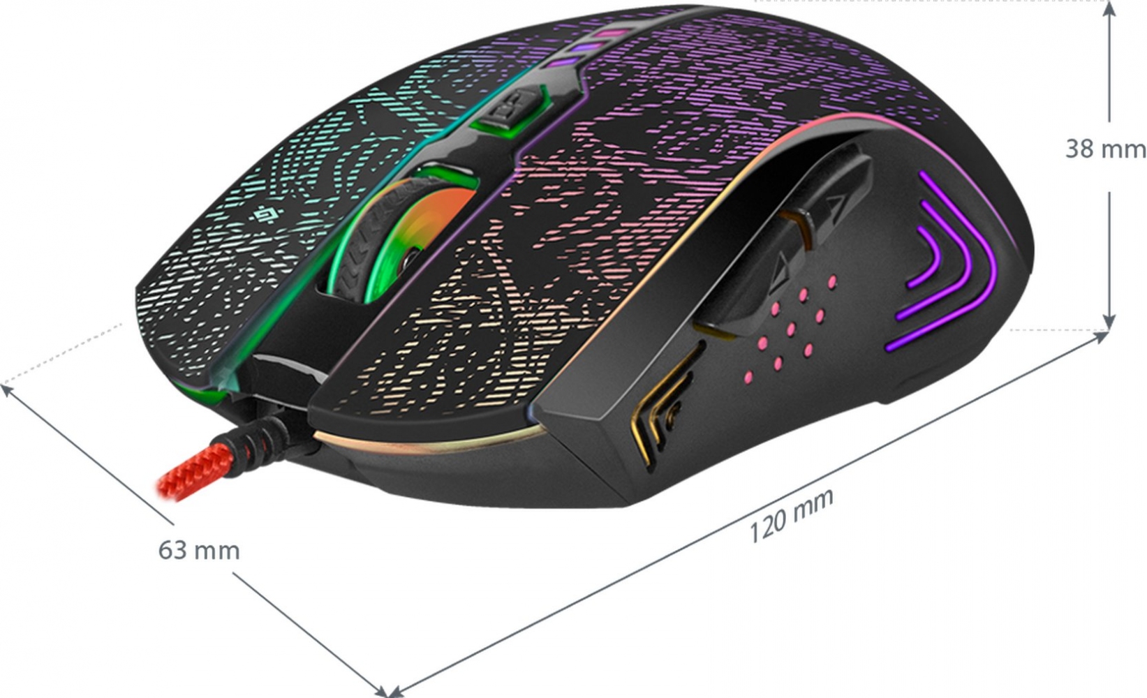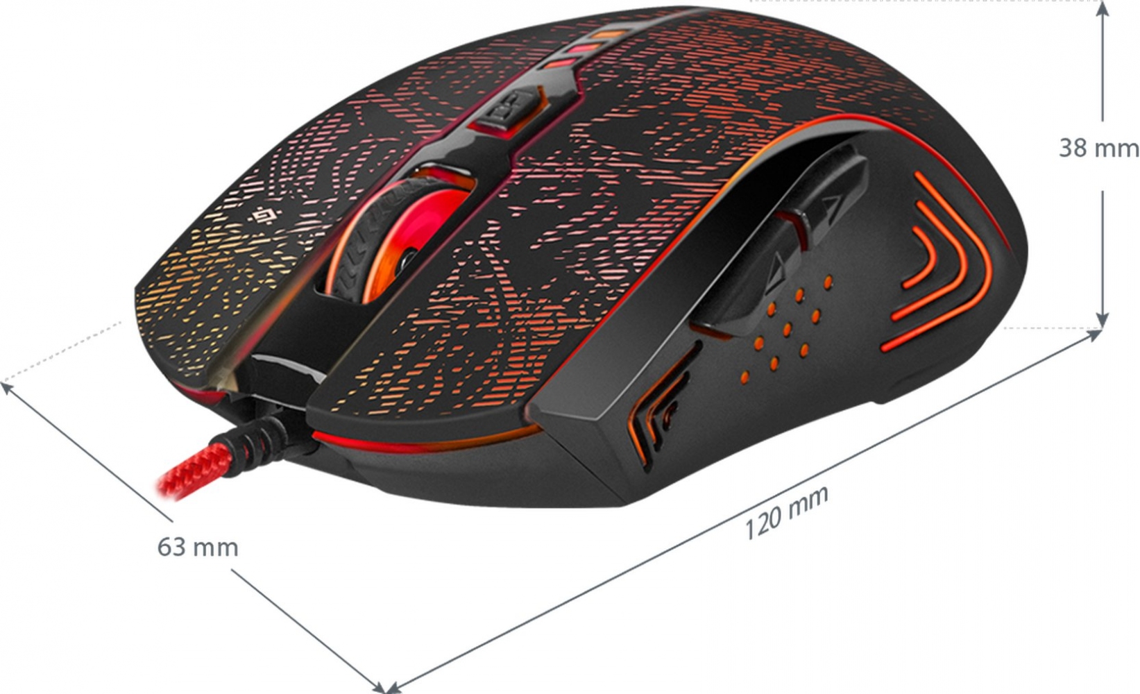 - проводная игровая мышь, оптический светодиодный сенсор с разрешением до 3200 dpi, 2 дополнительные боковые кнопки;