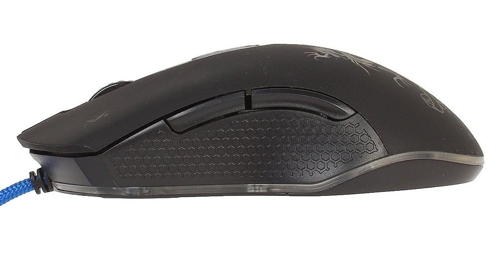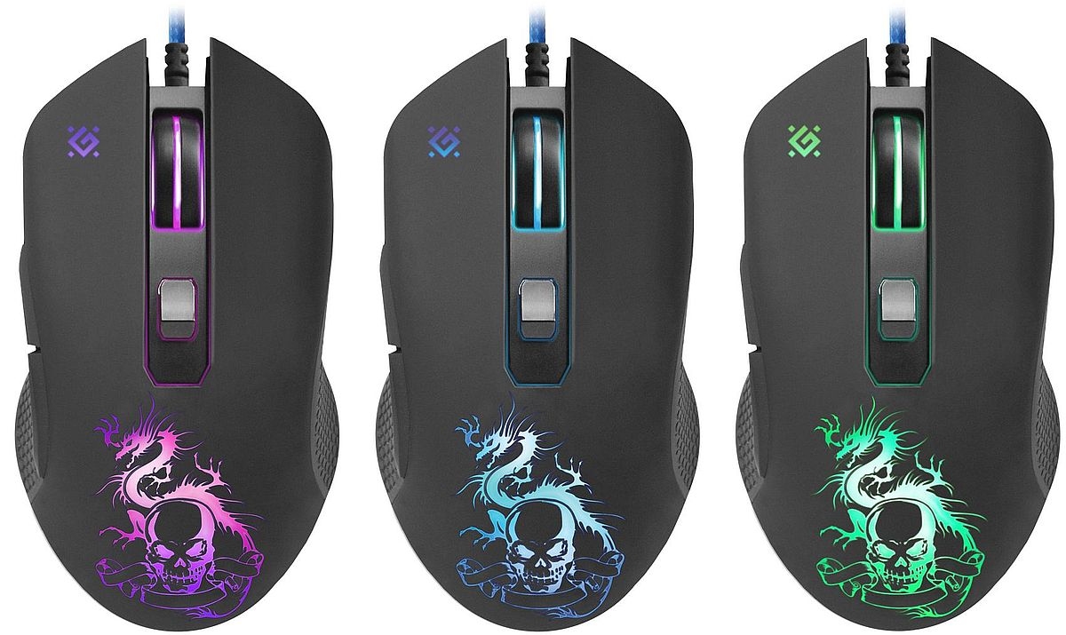- подсветка корпуса 3-х цветов, подсвечивается также рисунок на корпусе мыши: фиолетовый цвет, светло-зеленый, ярко-голубой;
